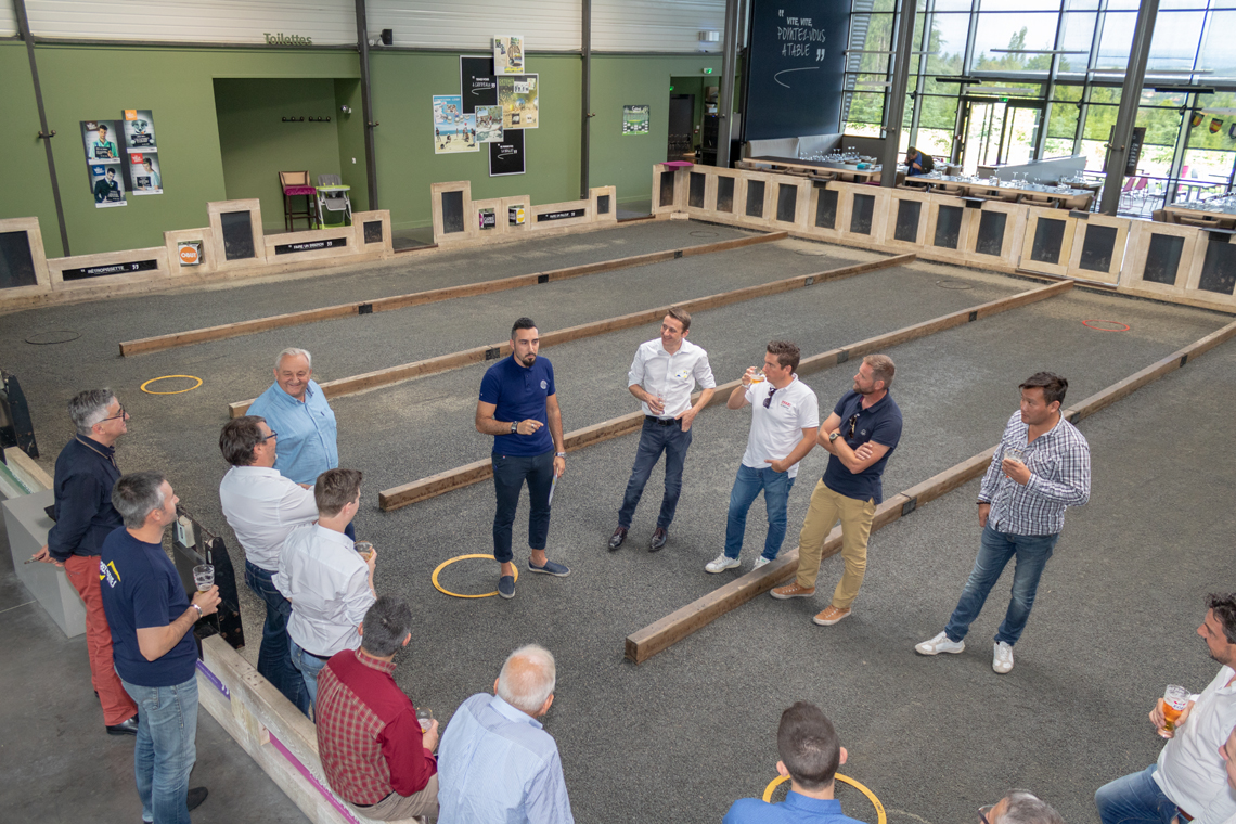 Un déjeuner a suivi, puis une visite de notre site de production de caisses. La journée s’est terminée par un concours de pétanque sur le site OBUT de St Bonnet le Chateau.