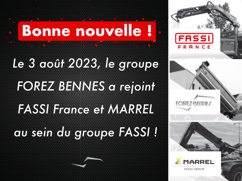BONNE NOUVELLE ! Le 3 août 2023, le groupe FOREZ BENNES a rejoint FASSI France et MARREL au sein du...